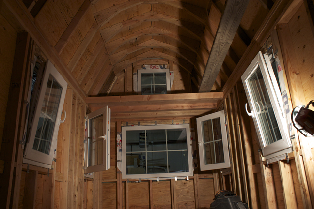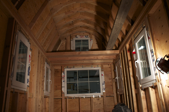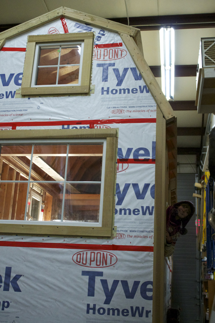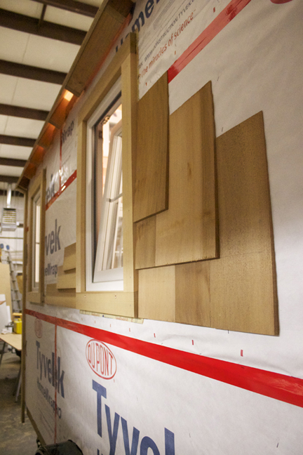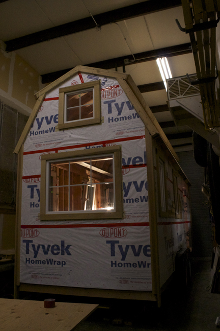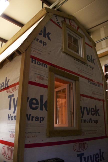 Our house is wrapped and the Cedar trim board nailed into placed. We decided to use Cedar shingles for the siding and the gambrel roof is ready to be covered with standing seam metal, we just have to pick a color (it’s not as easy as it sounds!).