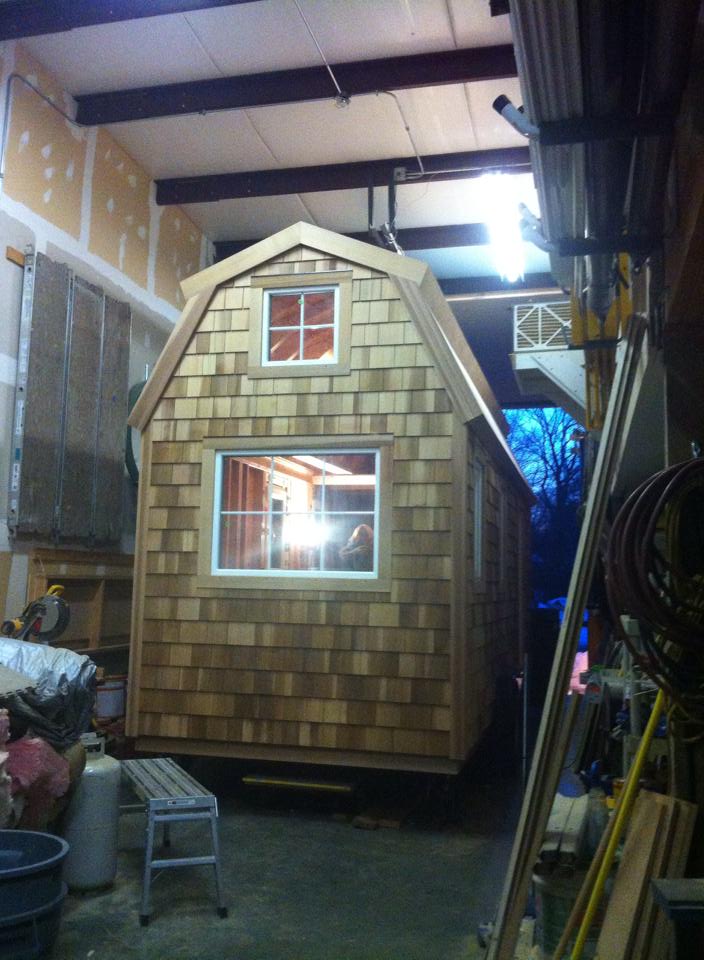 The siding and trim is completed, the door finally installed, and even a little storage box in front was added which will protect our spigot and electrical box from the elements. Our contractor’s capabilities and love for detail has exceeded all our expectations. We will vouch for them if somebody else in Connecticut wants to have professionals build their dream tiny home!